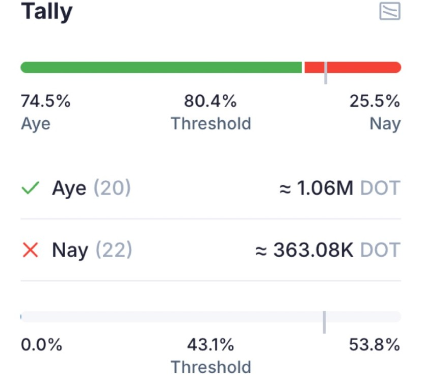 设计方案包含链上清算机制、超额抵押债务头寸以及由稳定费资助的可选储蓄模块。最新加密货币动态显示,初期投票支持率极高——截至发稿时,已有价值560万美元的140万枚DOT质押支持,四分之三的投票表示赞成。