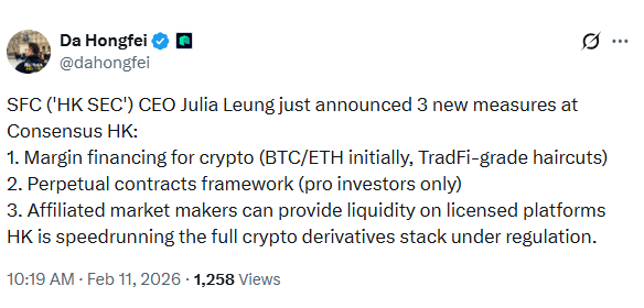 香港监管机构正着手为香港永续合约建立正式监管框架。证券及期货事务监察委员会(证监会)确认,持牌交易平台将很快获准提供加密货币永续衍生品。此举标志着香港在推进数字资产战略方面迈出了重要一步,旨在将杠杆式加密货币交易重新纳入本地监管体系,同时维持严格的风险控制。