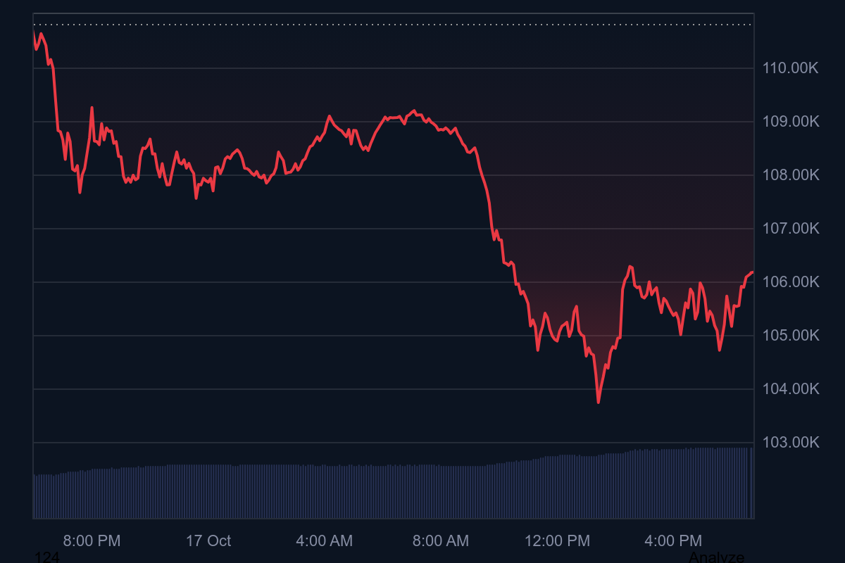 比特币(BTC)价格今日暴跌至10.4万美元下方,引发投资者担忧。在这轮急跌之后,市场最热议的话题是BTC是否会在10月底前跌破10万美元关口。