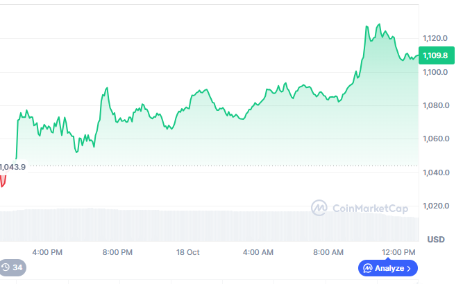 BNB持续稳定在1000美元关键位上方,交易者视该区域为潜在市场扩张的基础。代币的韧性和交易量增长表明,市场底部可能正在形成资金积累行为。