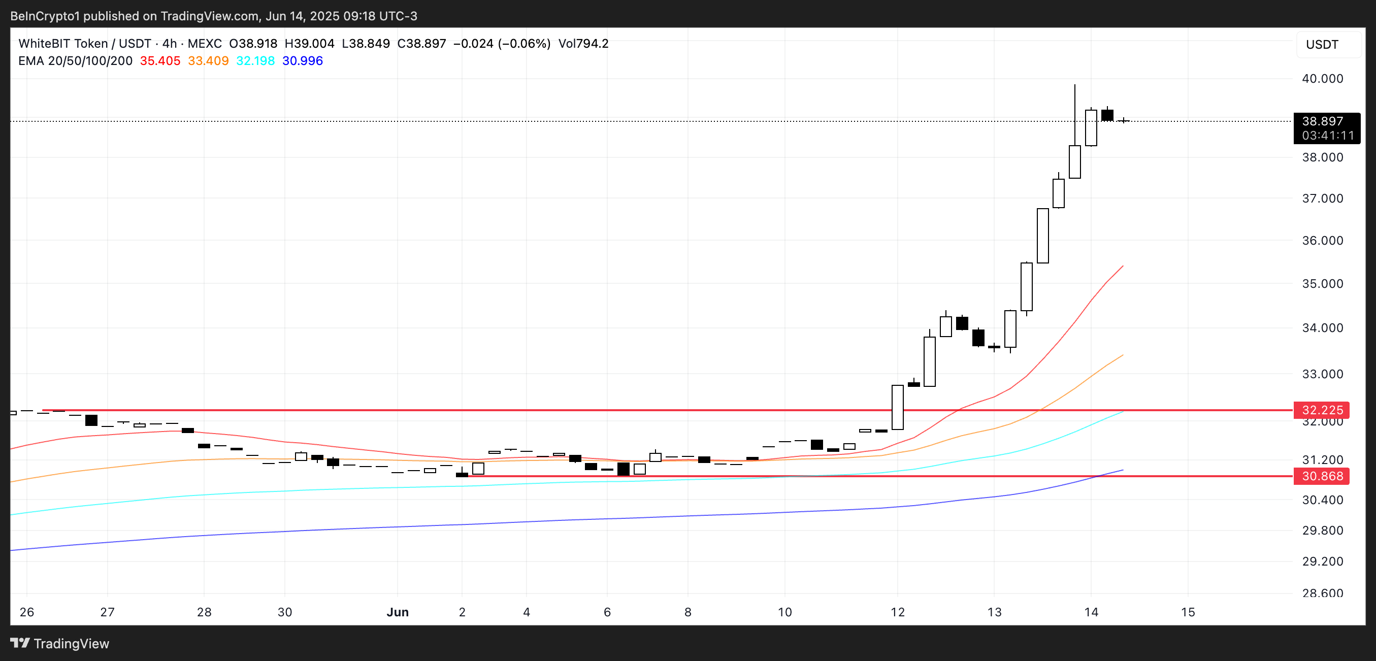 展望后市,若看涨压力持续且市场环境企稳,WBT可能挑战40美元心理关口,甚至上看45美元。但短期内仍需保持谨慎,32.22美元近端支撑位对维持当前上升趋势至关重要。若跌破该价位,可能进一步下探30.86美元。