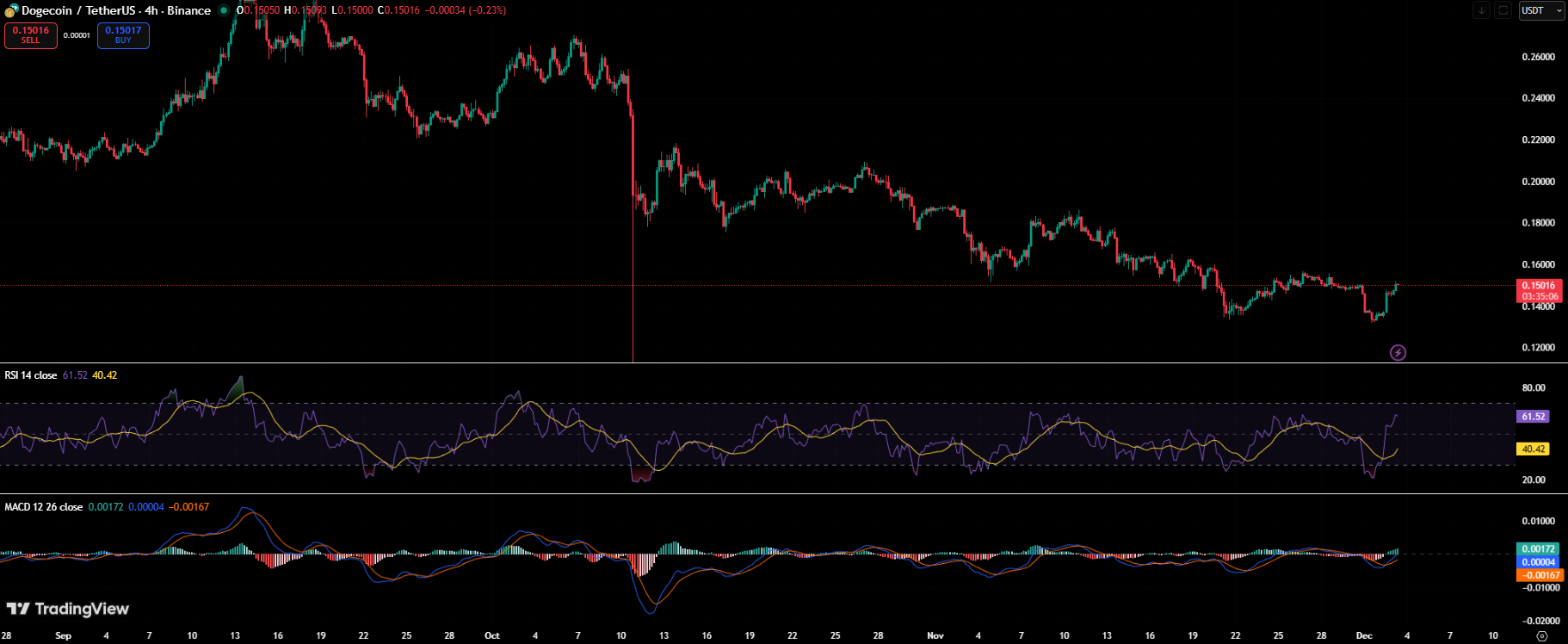 随着相对强弱指数和MACD指标信号转强,DOGE在24小时内反弹超过11%。