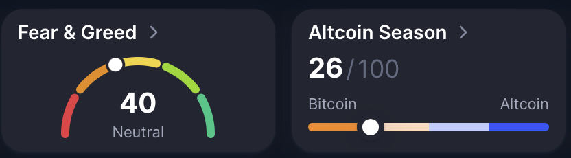 市场心理虽有所改善但仍保持谨慎。恐惧与贪婪指数目前处于40,属于中性区间。这与去年十二月底的深度恐慌水平形成显著对比,表明抛售压力已缓解,买家正在逐步而非激进地重返市场。
