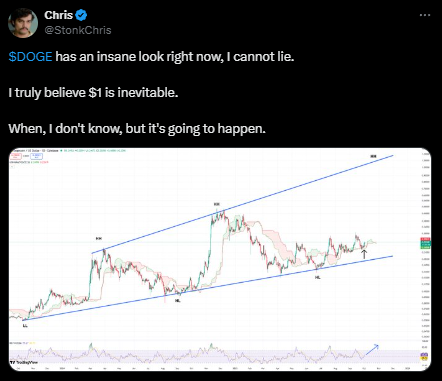 以下进展可能强化狗狗币看涨论调,并降低大级别形态的不确定性: