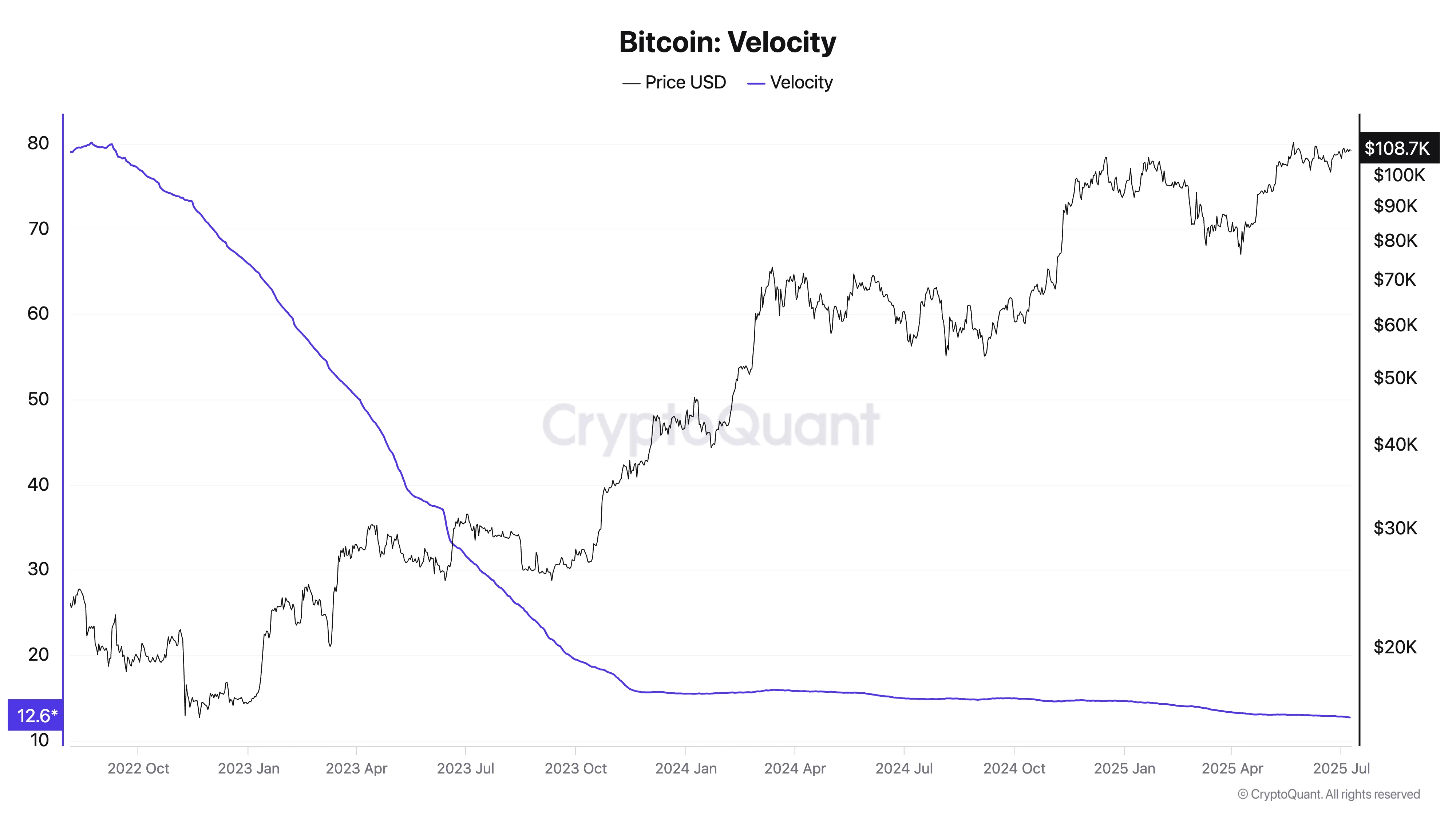 自7月以来,BTC流通速度持续放缓,表明该代币正进入低供应环境。7月8日,衡量比特币在一定时期内换手频率的链上指标收于12.68,创下三年新低。