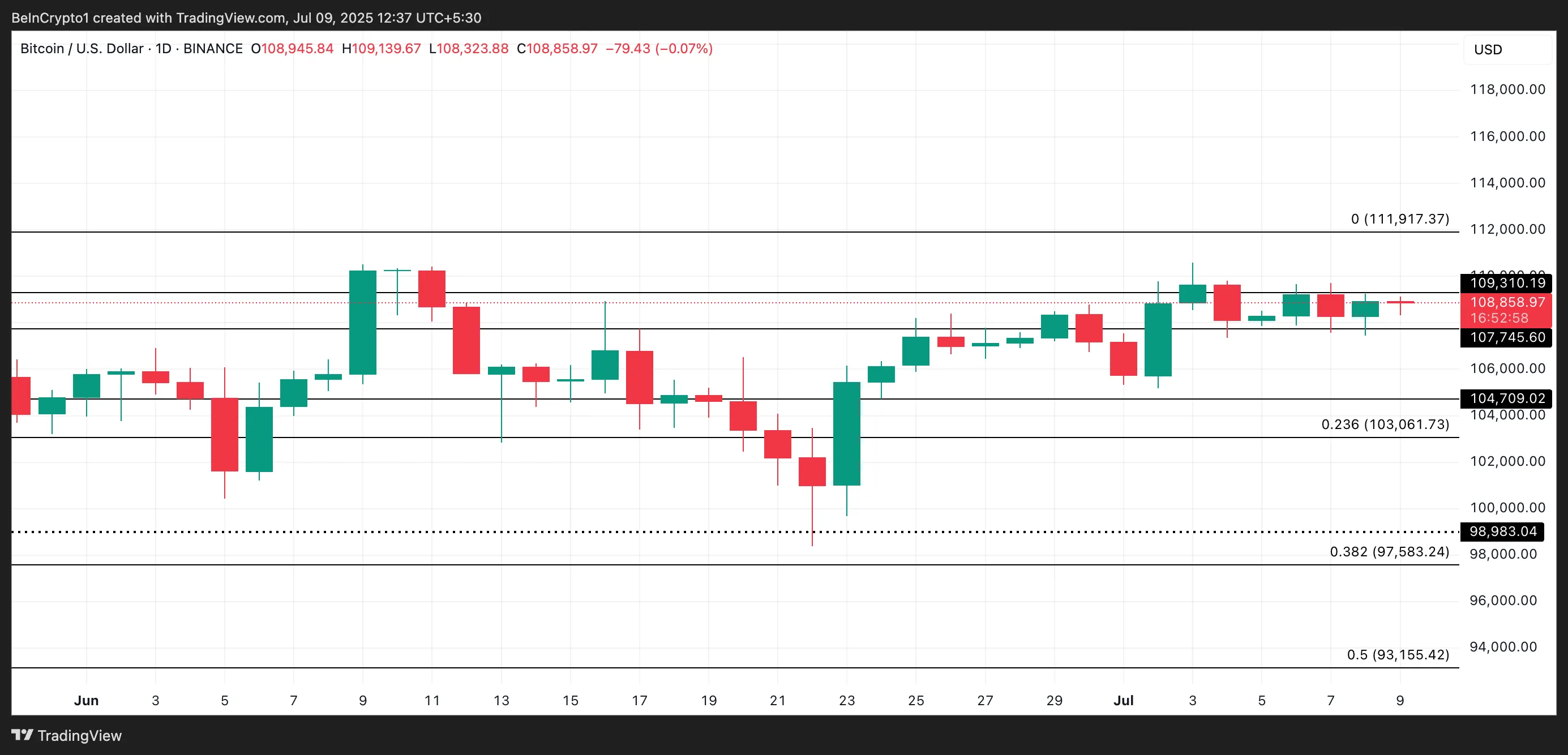 若买盘持续疲软,BTC价格可能跌破支撑下探104,709美元。