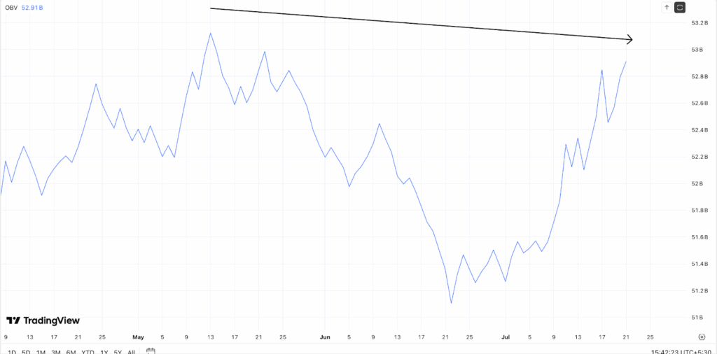 OBV指标现顶背离信号,买盘动能减弱值得警惕