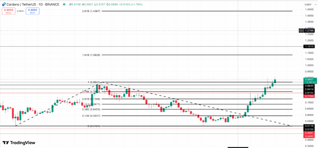 卡尔达诺价格突破0.8838美元关口,看涨预期指向1.43美元目标位