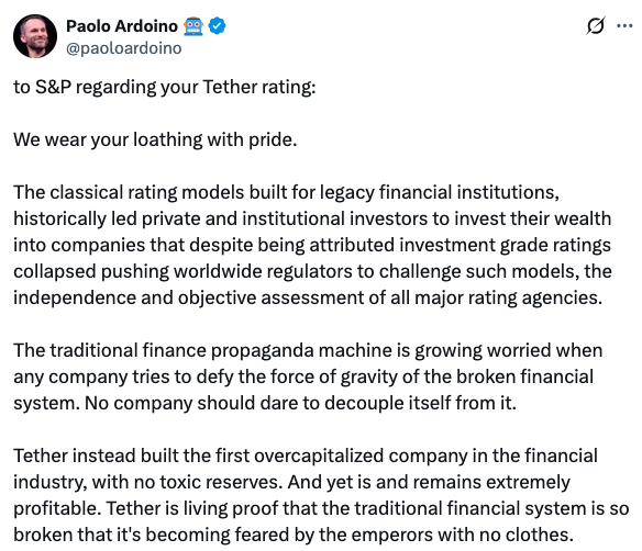 标普将USDT稳定评级下调至最低等级