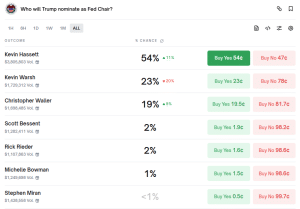 据《华尔街日报》12月16日援引知情人士报道,沃勒是五位候选人之一,其他竞争者包括领先者——国家经济委员会主任凯文·哈塞特,以及美联储理事凯文·沃什。在去中心化预测市场平台Polymarket上,交易员认为哈塞特接任鲍威尔的概率达54%,沃什以23%位列第二,而沃勒的胜率已从9%跃升至19%。