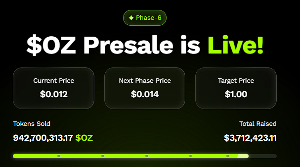 Ozak AI正迅速成为AI代币浪潮初期阶段的热门项目,这场浪潮预计将主导2025年的牛市行情。目前该项目处于第六轮预售阶段,单价0.0012美元,已筹集超370万美元并售出9.4亿枚代币,显示出投资者强烈的信心和早期鲸鱼活动迹象。