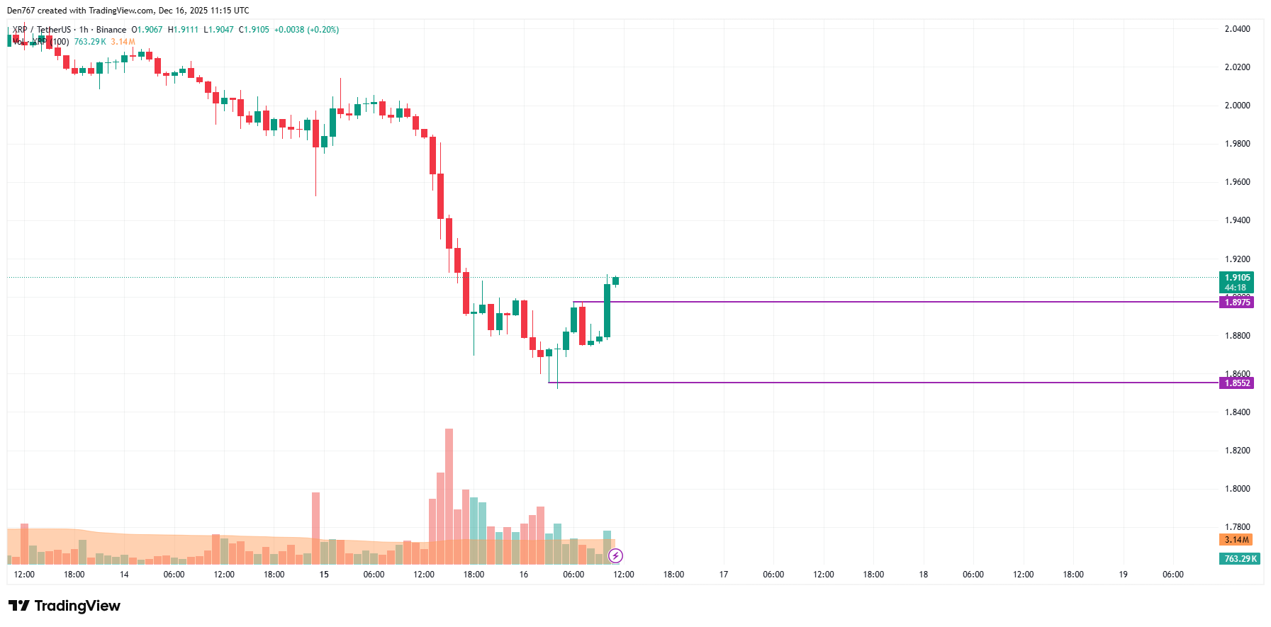 XRP汇率在突破1.8975美元局部阻力位后呈现回升态势。若买方能维持主动权,近期可能测试1.95美元区间。