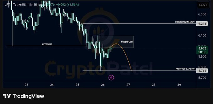 LPT/USDT形成看跌订单流结构 流动性目标指向5.766美元