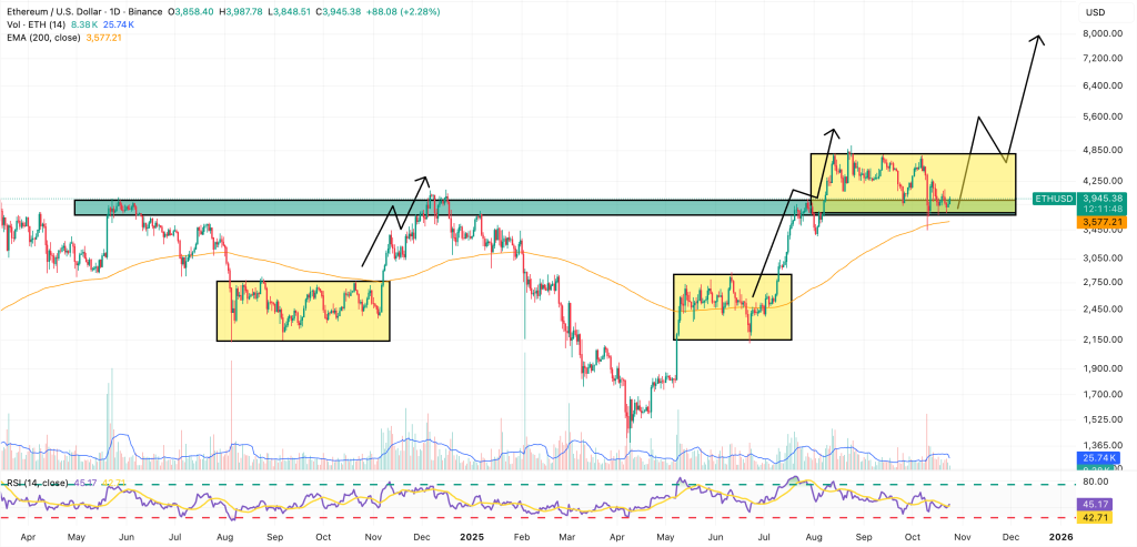 4800美元附近构成重要阻力带,该位置的突破将决定后续走势。若配合高于均值的交易量有效突破,ETH可能启动向8000美元目标位进发的行情。分析师指出,以太坊历史上结束盘整后的突破往往伴随显著涨幅。