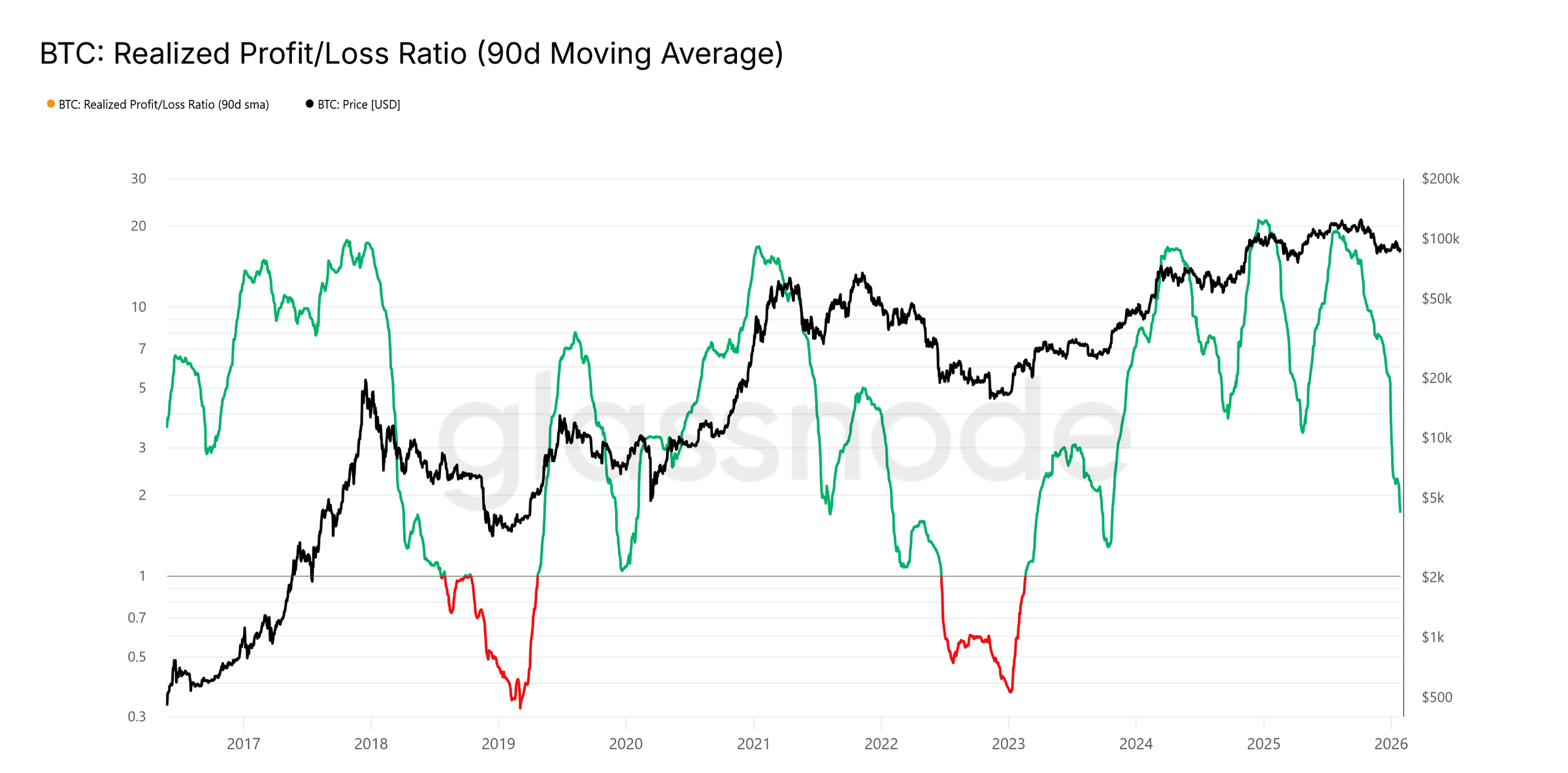 Glassnode在其社交平台指出,在比特币守住80,700至83,400美元支撑区间后,市场注意力已转向流动性状况。若要实现持续反弹,必须在流动性敏感指标中有所体现,尤其是已实现盈亏比(90日移动平均线)。