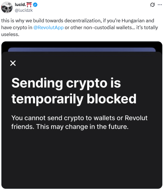 Revolut已暂停在匈加密服务,若缺乏明确指引更多平台可能跟进。