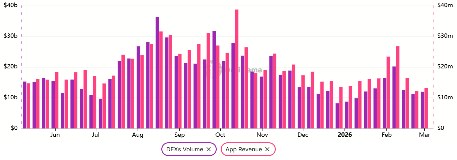 以太坊网络上的周度DEX交易量近期降至126亿美元,较一个月前的202亿美元有所下降。去中心化应用(DApp)七日收入降至1410万美元,较上月下降47%。竞争公链也呈现类似趋势,Solana上的DEX交易量在同一30天周期内亦下降50%。