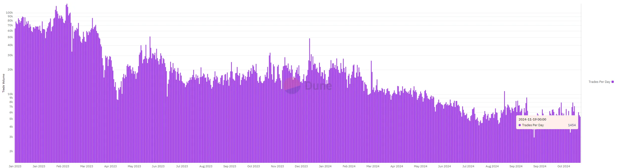 尽管出现复苏迹象,但NFT市场在2024年整体仍处于困境。数据显示,某些NFT系列交易活动稀少,反映出市场饱和。
