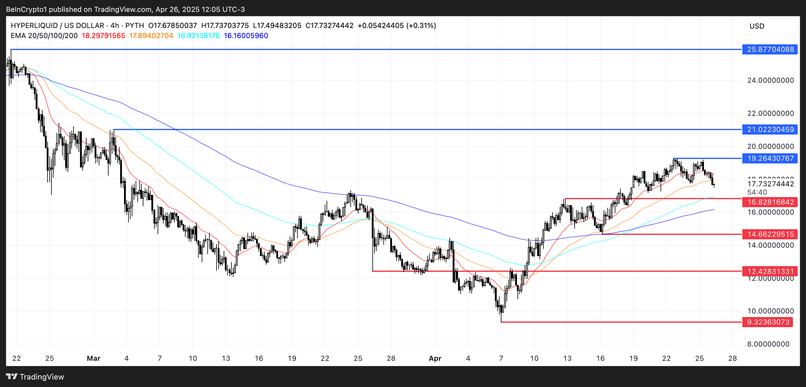 另一方面,如果看涨势头回归,HYPE可能会再次挑战19.26美元的阻力位。明确突破该水平可能会打开通往21美元的道路,如果势头保持强劲,可能会达到25.87美元。这将标志着自2月21日以来首次突破25美元。