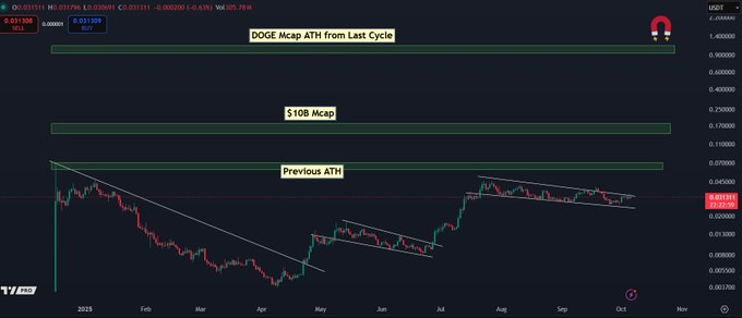 日内价格图表显示,该资产早盘曾冲高至0.03255美元,随后遭遇强卖压进入下跌区域。值得注意的是,买方似乎正在关键支撑位积极防守,反复测试支撑有效性。分析师CryptoBull指出,下一关键阻力位在0.038美元,而0.04-0.043美元区间则是决定性的突破点位。
