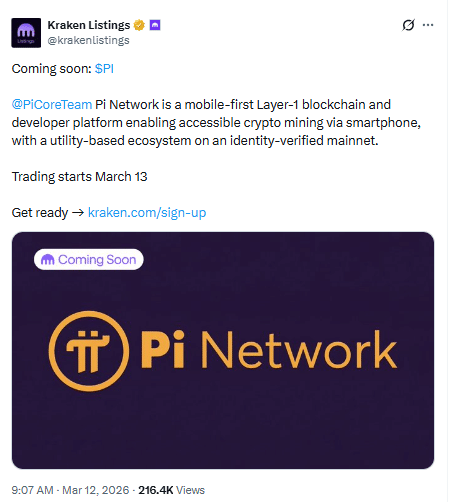 据消息源透露,这家总部位于旧金山的交易所将于2026年3月13日开始交易Pi Network原生代币。该公告鼓励用户在正式上线前完成平台注册,但交易所未公布具体交易对及精确上线时间。尽管如此,此次上币仍标志着该代币首次登陆全球顶级交易所。