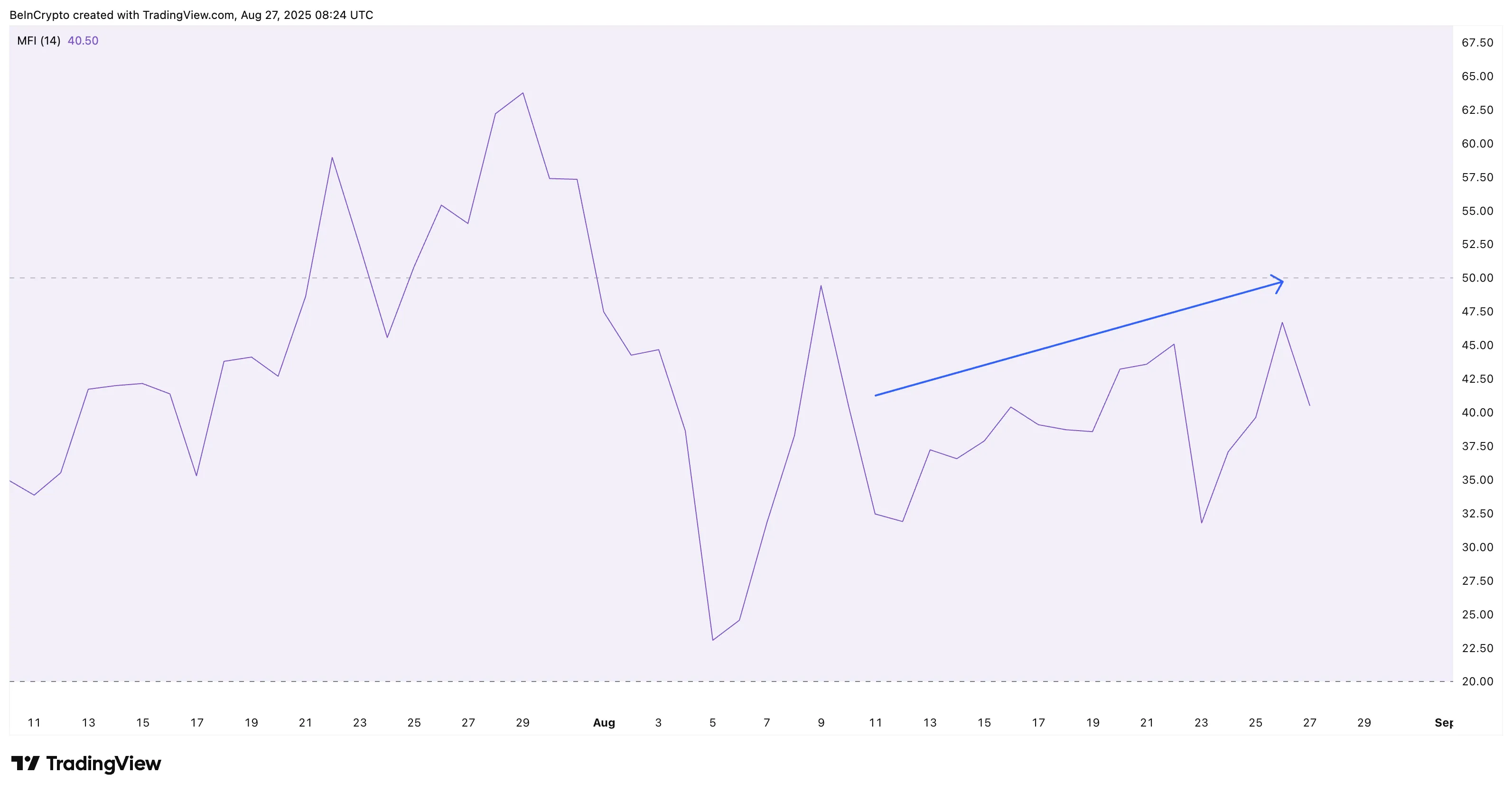 衡量买卖压力的资金流量指数(MFI)自八月中旬以来持续形成更高高点。这意味着即便价格走低,仍有新增资金入场——这是逢低买入的明确信号。