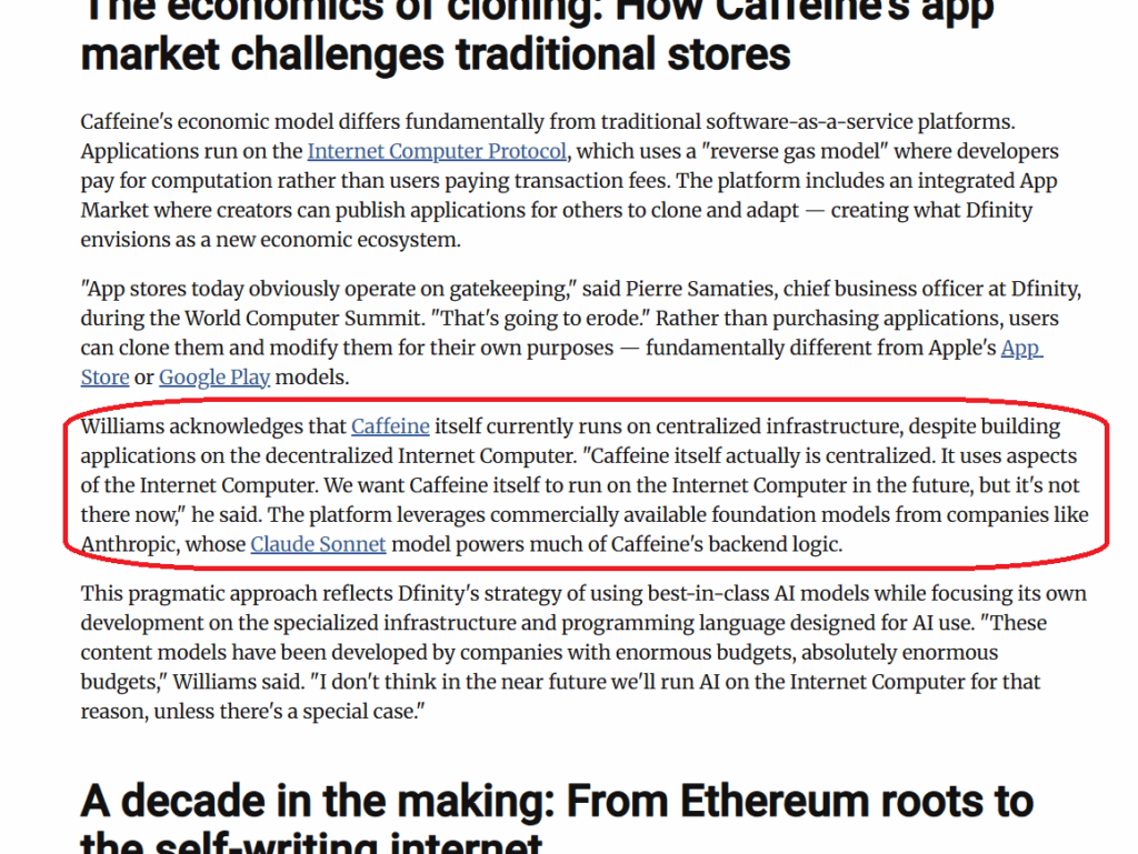 然而,批评者和ICP创始人Dominic Williams指出,Caffeine仍然依赖中心化组件,这显然不是好事。ICP关于“去中心化云和人工智能”的承诺尚未完全实现。其实际采用率也很低。ICP的技术限制依然存在,在这方面进展不大。这是一个充满希望的迹象,但并非真正扭转局面的证明。