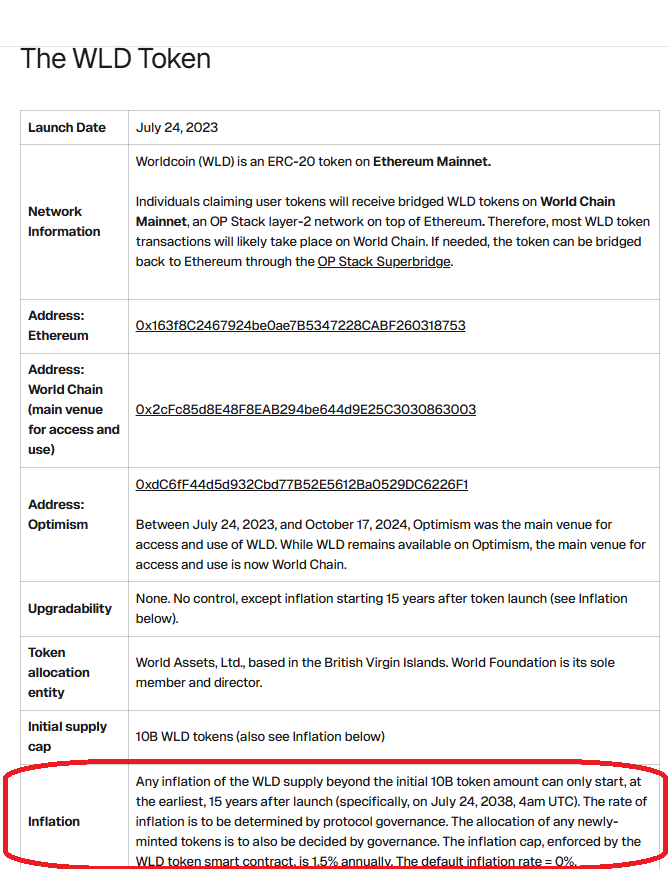 不幸的是,$WLD的代币经济学看起来也不太理想。其最大供应量为100亿$WLD。然而,自2023年7月推出以来,仅有23%在流通。代币将在最初的15年内逐步解锁,也就是说直到2038年7月。