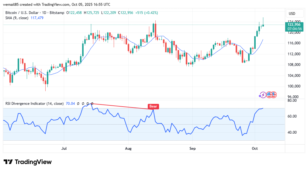 从技术角度看,比特币从125,700美元回落至123,100美元附近被视为健康回调而非趋势反转。TradingView数据显示,四小时图上价格仍远高于50周期均线(现位于118,000美元附近),多位交易员将其视为潜在反弹区域。