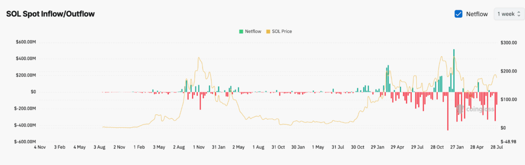 当资金外流加速时,意味着更多SOL进入交易所,即时卖压随之减轻。流通量减少通常会使Solana价格在需求回升时更易上涨。