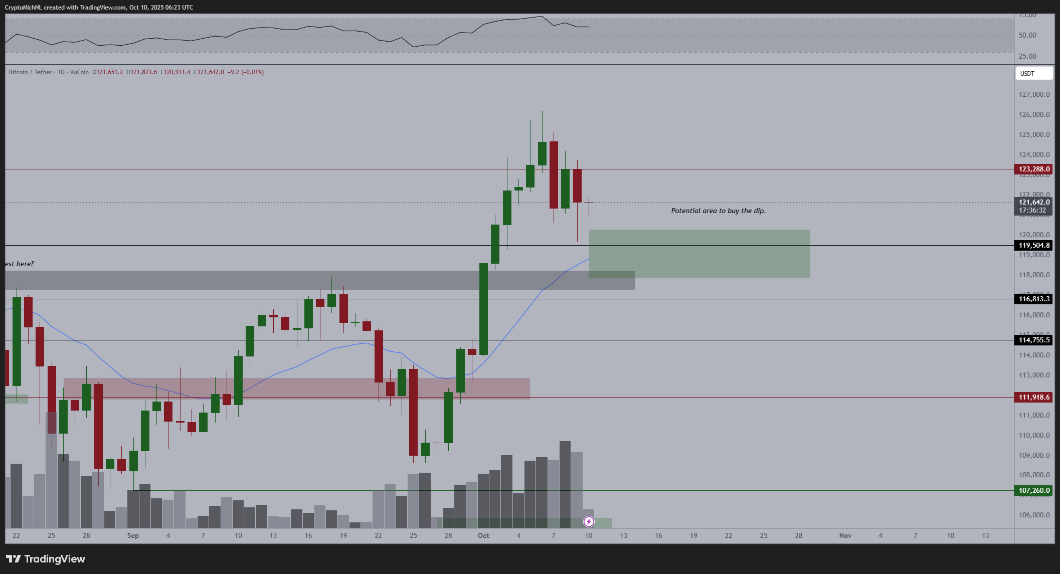 交易员Michaël van de Poppe指出,比特币近期回调恰好止步于12万美元关键积累区域。他认为修正阶段已"告一段落",为价格再创新高铺平了道路。该分析师分享的图表显示,此次下跌完美契合技术支撑区,他将其描述为"潜在买入区域"。