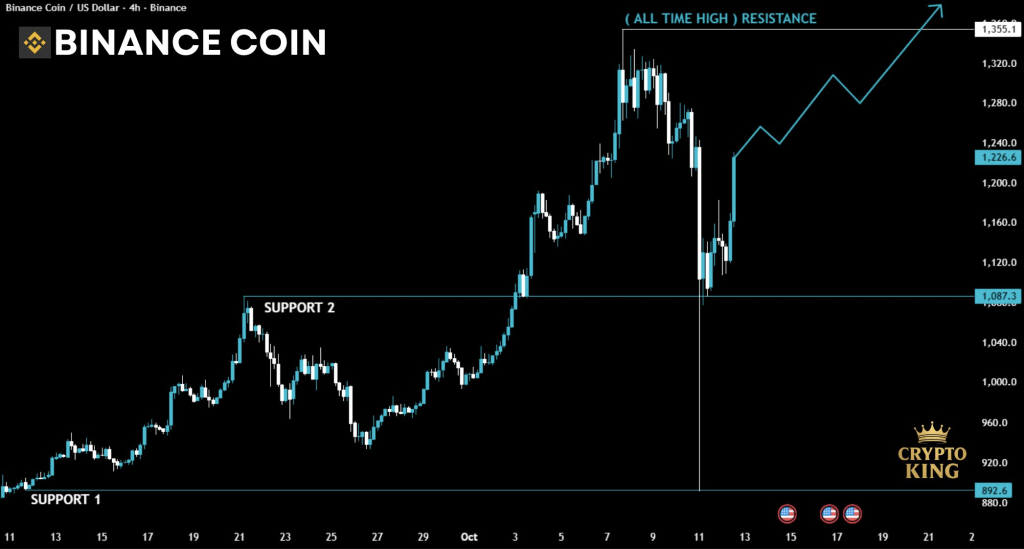 分析师预测BNB将迎来看涨反转,其价格从1087美元支撑位反弹后,目前正向1355美元关口进发。加密分析师Crypto King指出,尽管经历深度回调,BNB重获上涨动能,表明市场趋势正在向积极方向转变。