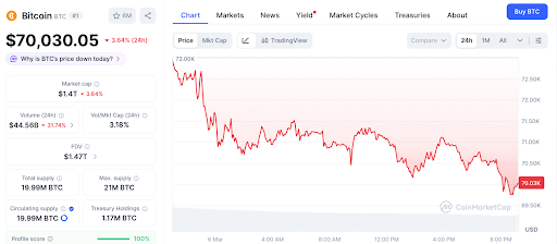 比特币于7万美元附近盘整 价格预测指向六位数