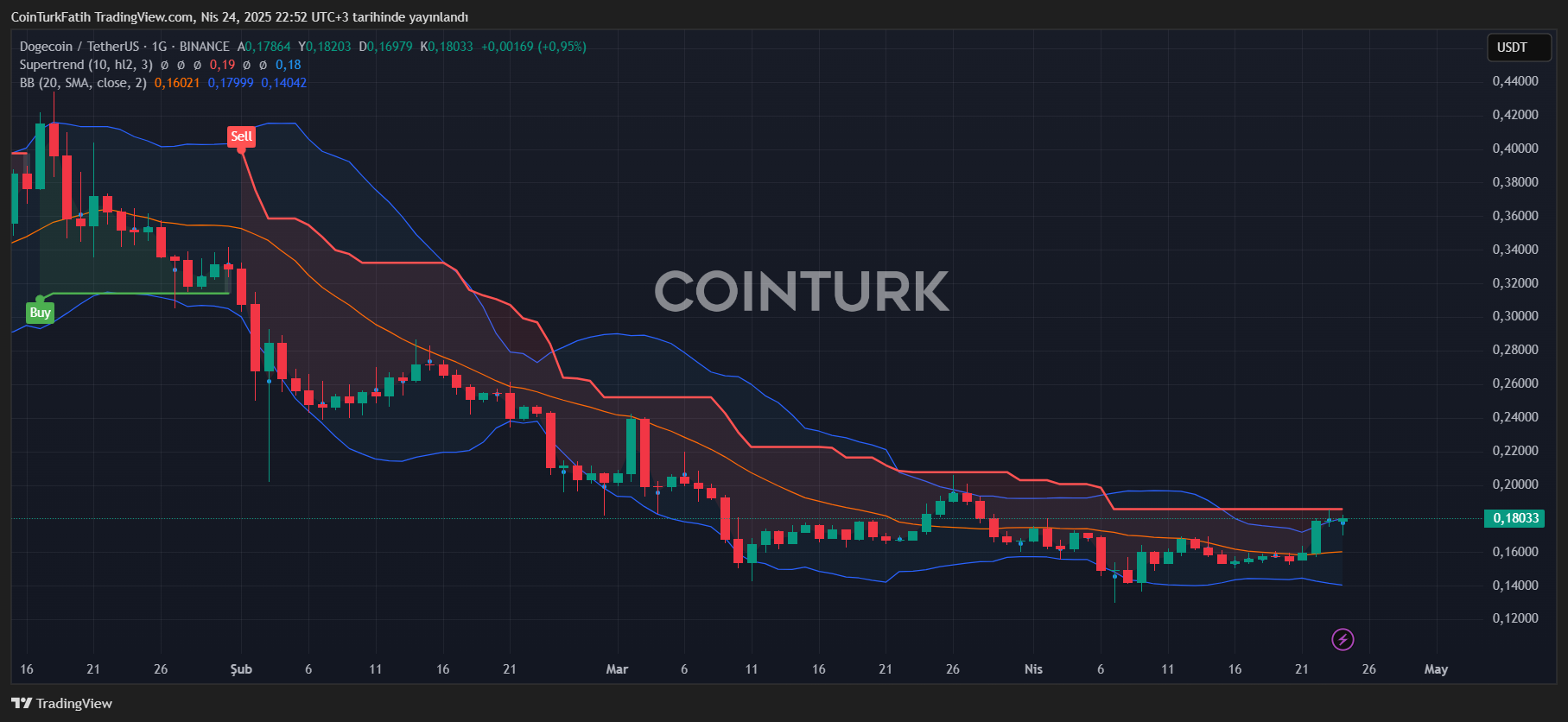 然而,如果BTC出现假性反弹,支撑位将在0.167美元至0.157美元之间。目前,在BinanceTR上观察到的DOGE价格为6.92土耳其里拉。