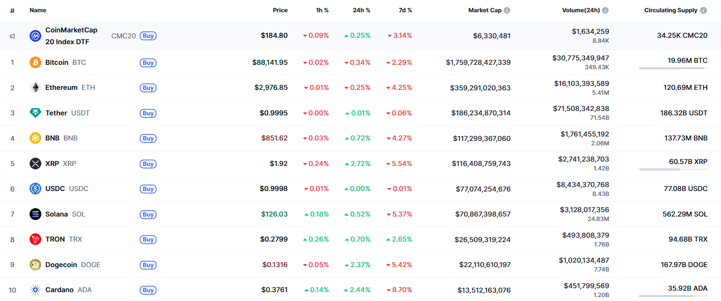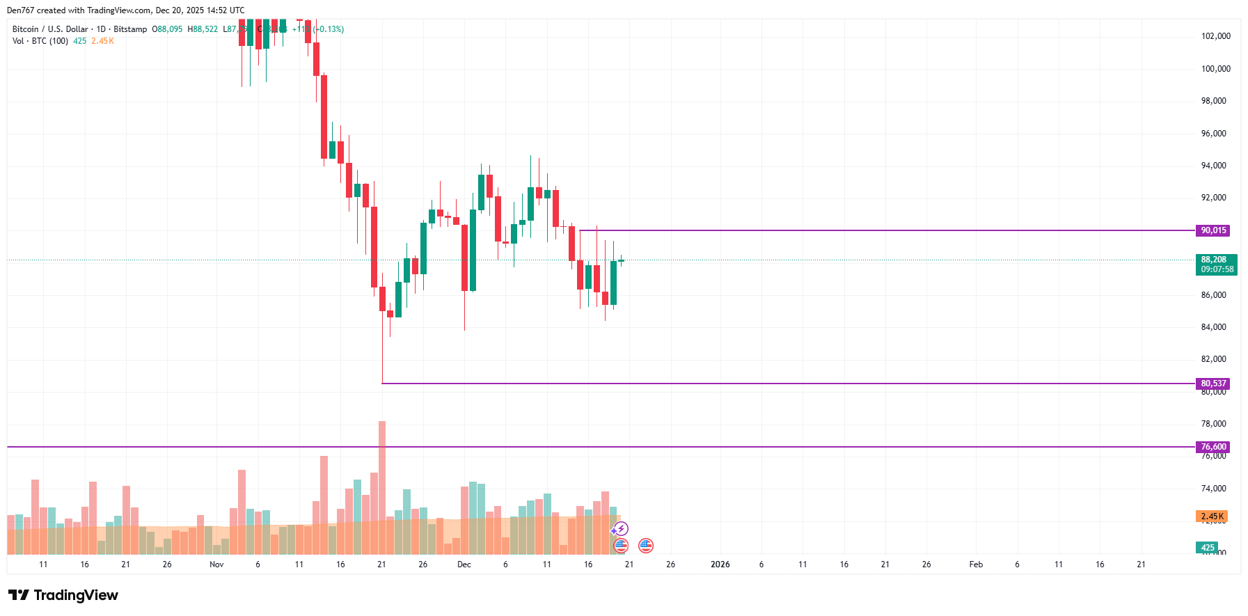中期走势呈现相似格局。在此背景下,交易者在本月底前恐难见到波动率显著提升。截至发稿,比特币交易价格为88,222美元。