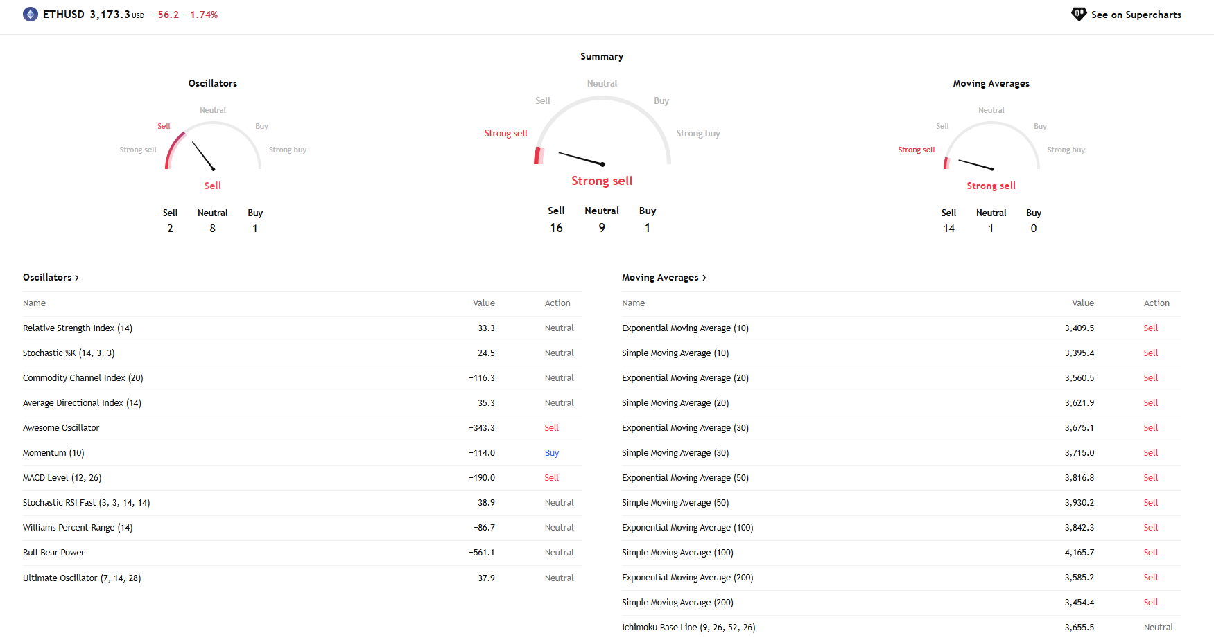 技术指标同样呈现下行趋势。相对强弱指数(RSI)已降至33.3,表明市场存在较高抛压。在空头主导的情况下,以太坊价格短期内可能跌破3000美元关口。