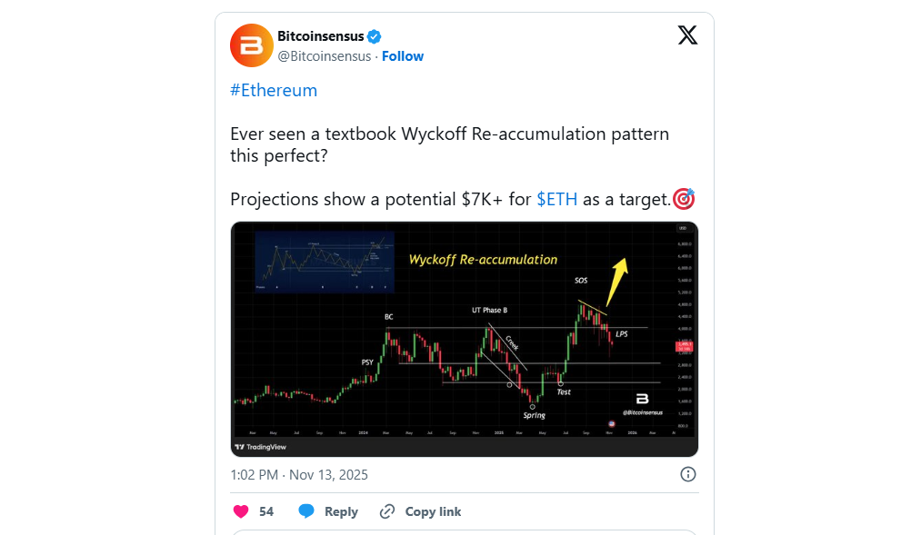 专业分析师指出,该代币正在形成典型的Wyckoff再积累模式。Bitcoinsensus预测ETH价格未来可能攀升至7000美元,使其成为当前值得关注的替代币之一。