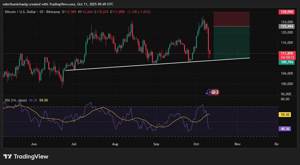 本轮关税战升级让分析师开始思考:这是否会导致比特币价格跌破10万美元大关?今年早些时候关税问题冲击市场时,加密货币就曾遭遇强劲的下行压力。在最近的回调中,比特币价格短暂守住了11万美元上方的短期上升支撑线,但关税战升级的威胁可能给加密货币带来更大压力。