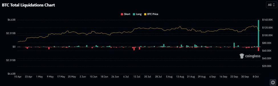 数据显示,过去24小时全网爆仓金额达53亿美元,创下比特币有史以来最大单日爆仓纪录,其中多头爆仓占比约46.3亿美元。