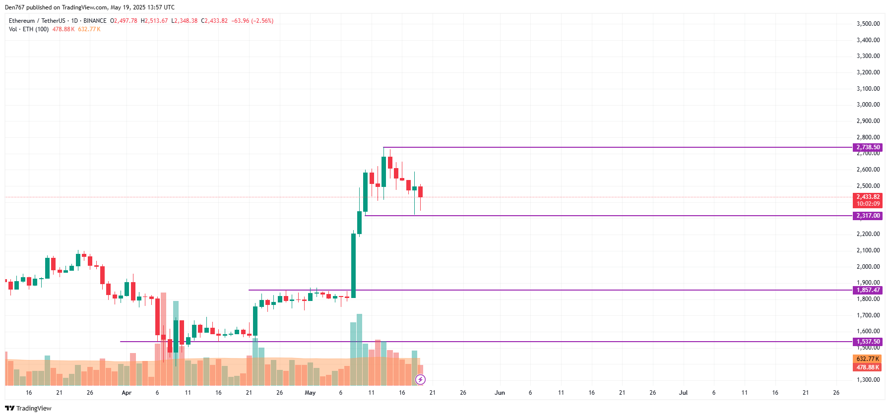截至发稿时,以太坊交易价格为2,446美元。