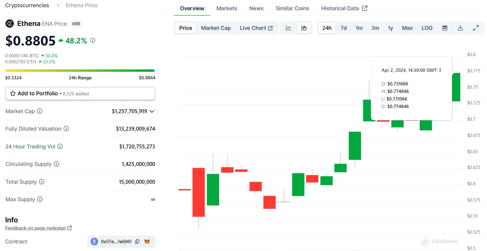 然而,这些争议并未能冷却投资者的热情。自推出以来,该代币已积累了足够的市值,根据Coingecko的数据,其总市值超过12亿美元,位列加密货币生态系统第80位。