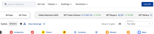 链上NFT数据平台CryptoSlam.io统计显示,覆盖20余条区块链网络的NFT市场正在逐步修复。过去24小时内,NFT市场总交易量达1300万美元,较前日增长9%。