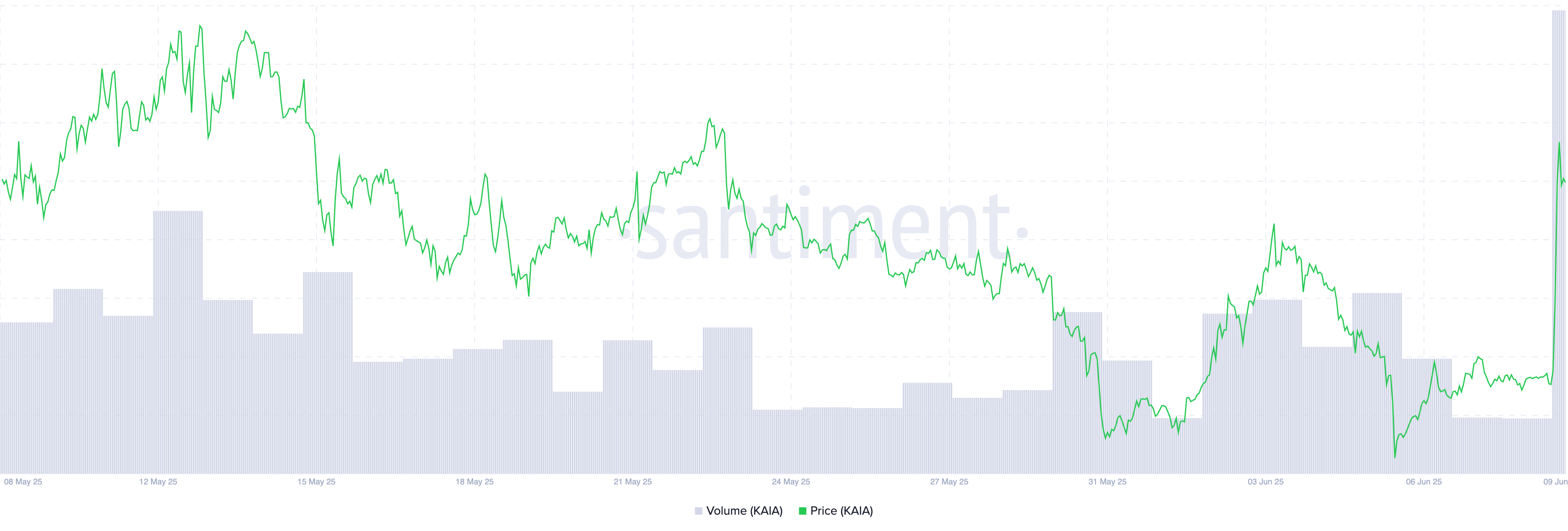 截至撰稿时,KAIA以0.119美元的价格交易,创18日新高。伴随两位数涨幅的是交易量激增——过去24小时成交量飙升920%,达到6200万美元。