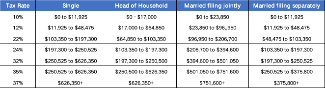 Ø 持有加密货币不足一年时,需缴纳短期资本利得税。税率按普通所得税率计算,根据个人年收入从10%到37%不等: