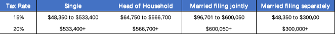 Ø 持有加密货币超过一年时,需缴纳长期资本利得税。长期资本利得适用优惠税率,多数纳税人将按0%、15%或20%缴纳: