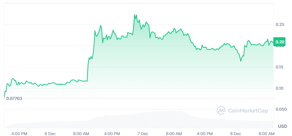 POWER在过去七日涨幅超158%。该代币于12月5日上线,次日创下0.27美元以上的历史新高。截至本文撰写时,POWER交易价格高于0.2美元,市值超4380万美元。