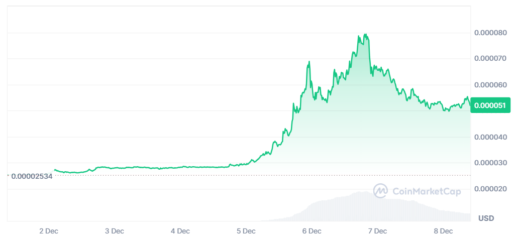 LUNC在过去一周暴涨超111%。自12月4日从1.55亿美元市值启动涨势,LUNC于12月6日市值突破4.35亿美元。