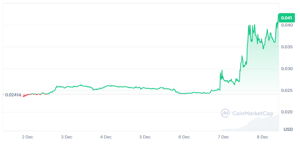GLMR价格在过去七日上涨超69%。自12月6日从0.02美元启动显著涨势,GLMR于12月8日突破0.04美元。