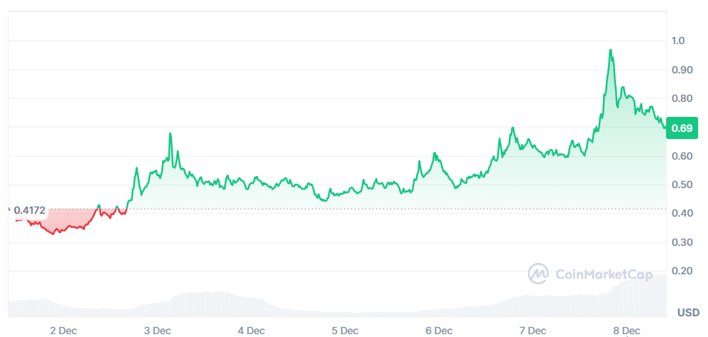 PIEVERSE在过去七日涨幅超65%。该数字资产自12月2日从0.39美元启动上涨,于12月7日触及0.99美元的历史新高。
