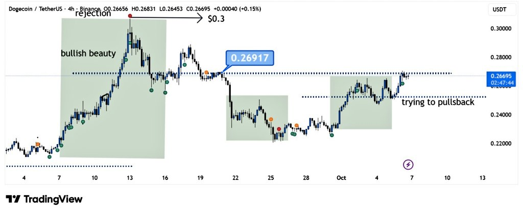 狗狗币测试0.27美元阻力位,或有望冲击0.3美元上方目标